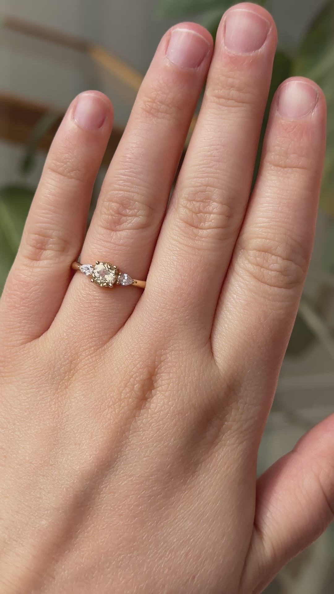 Iris Ring | Apricot Sapphire + Pear Diamond Accent Engagement Ring 0.93 ct | 14k Recycled Gold | One of a Kind