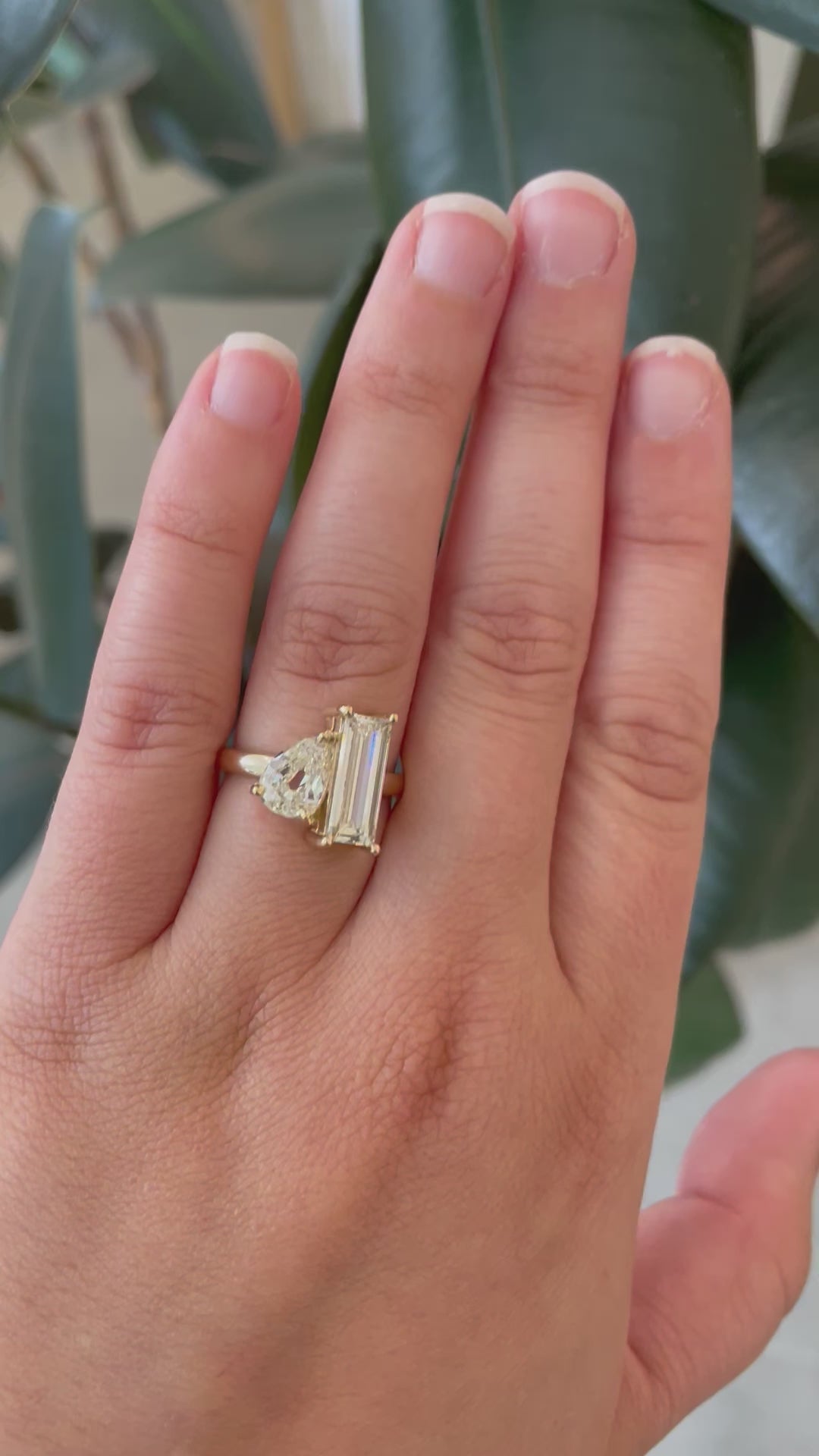 Liana Ring | Baguette Diamond + Pear Diamond Engagement Ring 2 ct | 14k Recycled Gold | One of a Kind