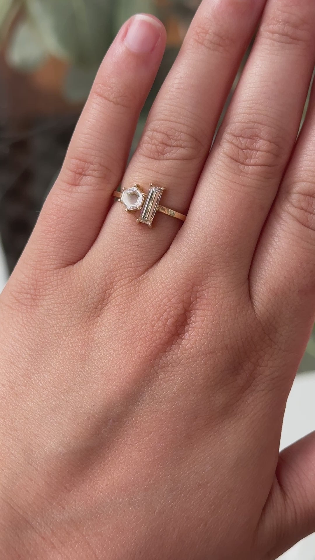 Liana Ring | Champagne Baguette Diamond + Hexagon Engagement Ring | 14k Recycled Gold | One of a Kind