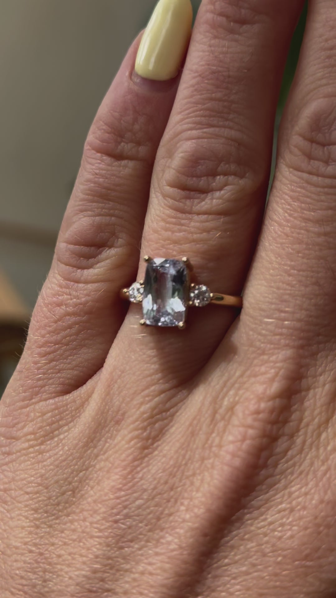 Maeve Ring | Icy Lavender Cushion Sapphire + Round Diamond Accent Engagement Ring 2.61 ct | 14k Recycled Gold | One of a Kind