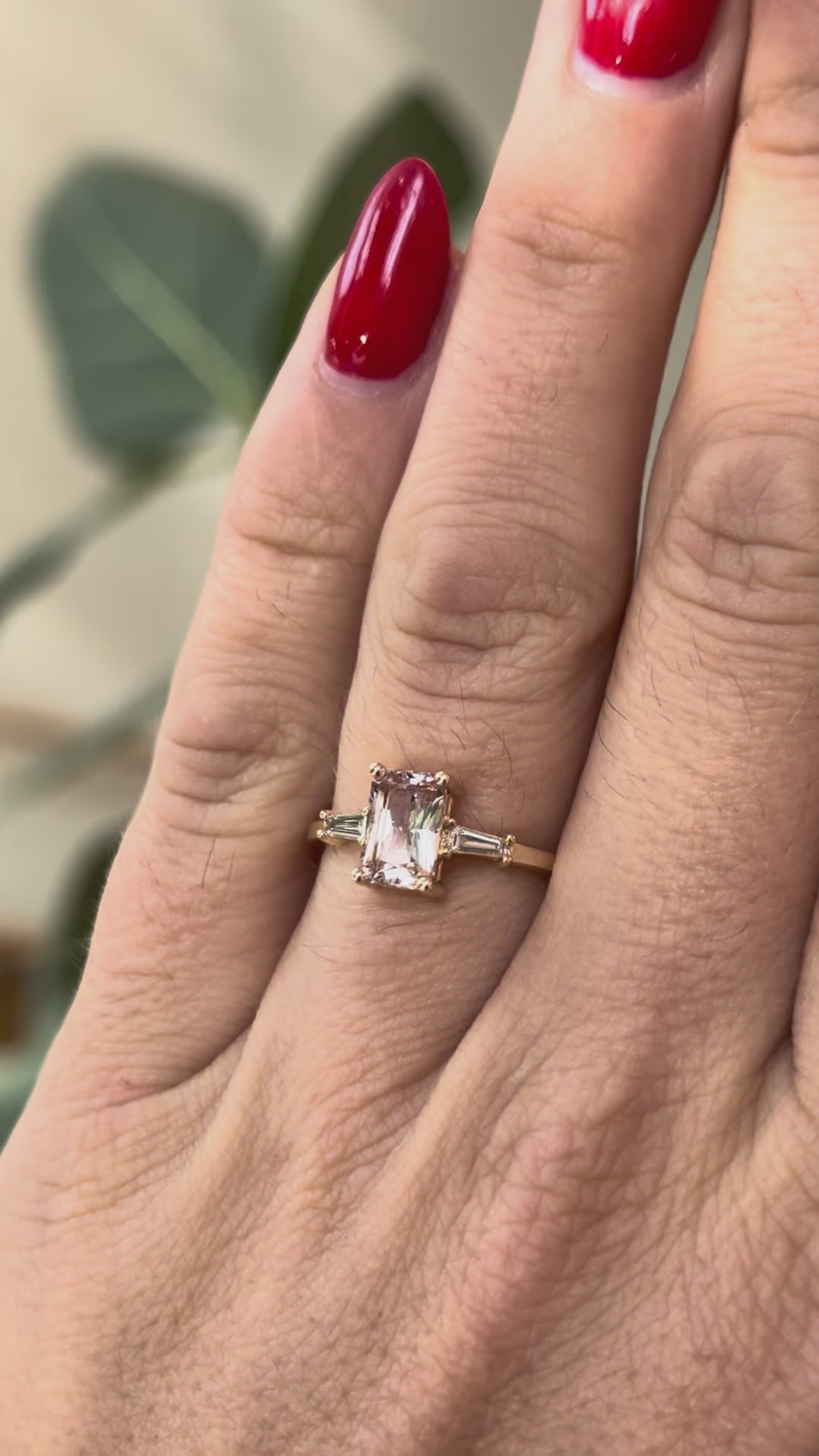 Marlowe Ring | Icy Lavender Emerald Cut Sapphire + Tapered Baguette Engagement Ring 1.34 ct | 14k Recycled Gold | One of a Kind
