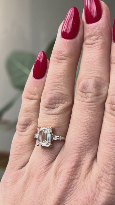 Marlowe Ring | Lab Emerald Cut Diamond + Tapered Baguette Lab Diamond Accent Engagement Ring 3.09 ct | 14k Recycled Gold | One of a Kind
