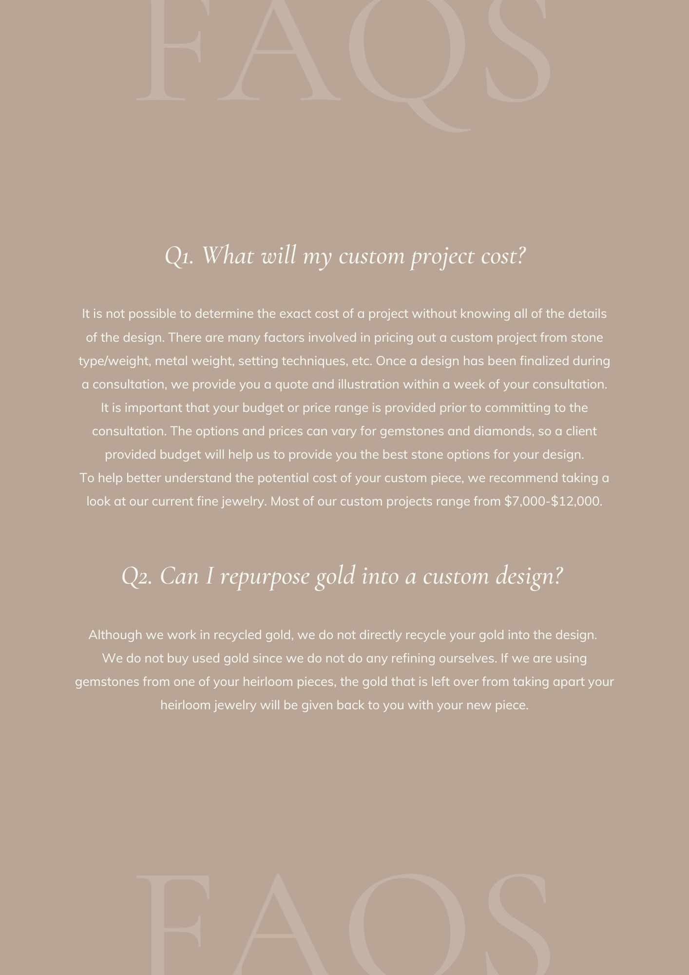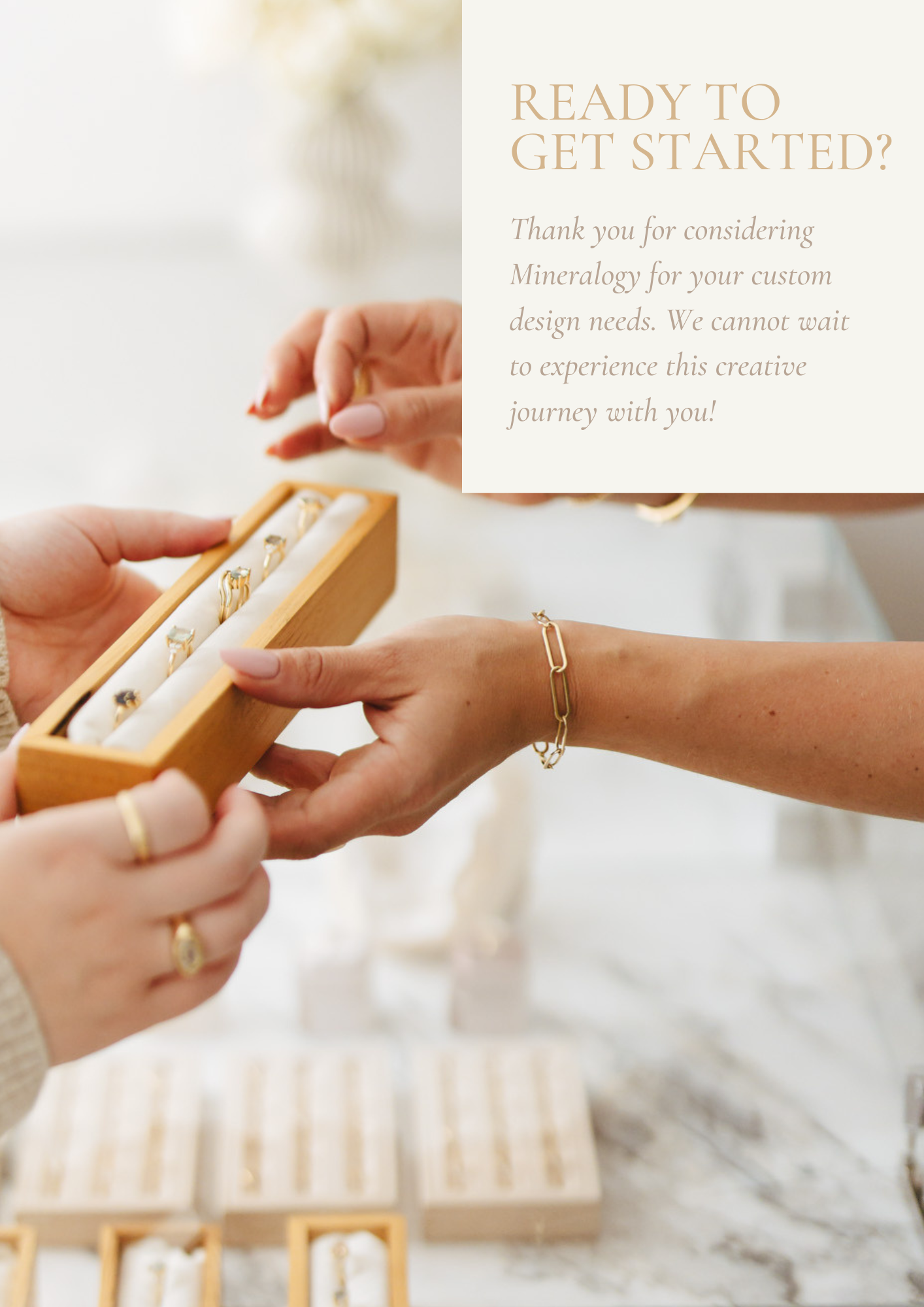 Interested in collaborating with us on a custom project? Read through our custom guide below to learn how our custom process works!