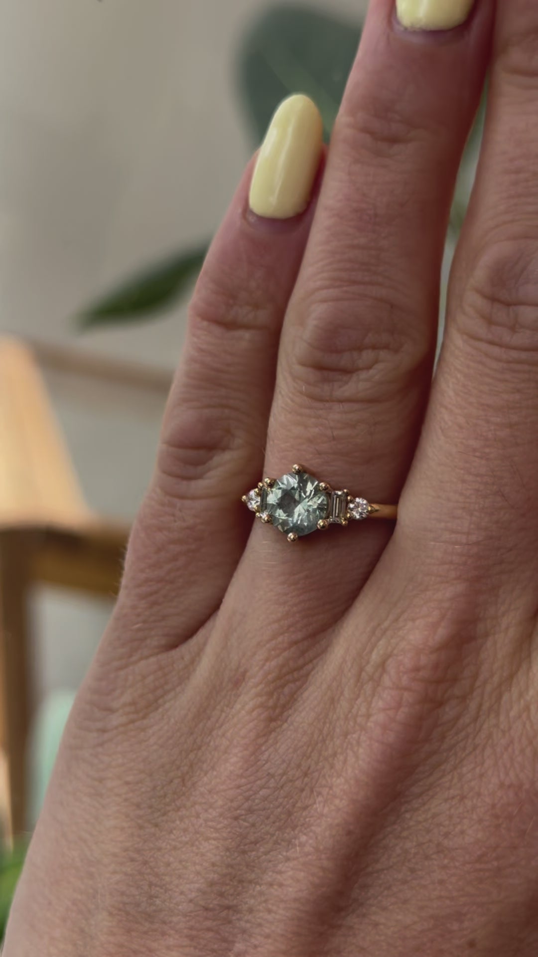 Alsea Ring | Mint Green Montana Sapphire + Baguette and Round Diamond Accent Engagement Ring 1.55 ct | 14k Recycled Gold | One of a Kind