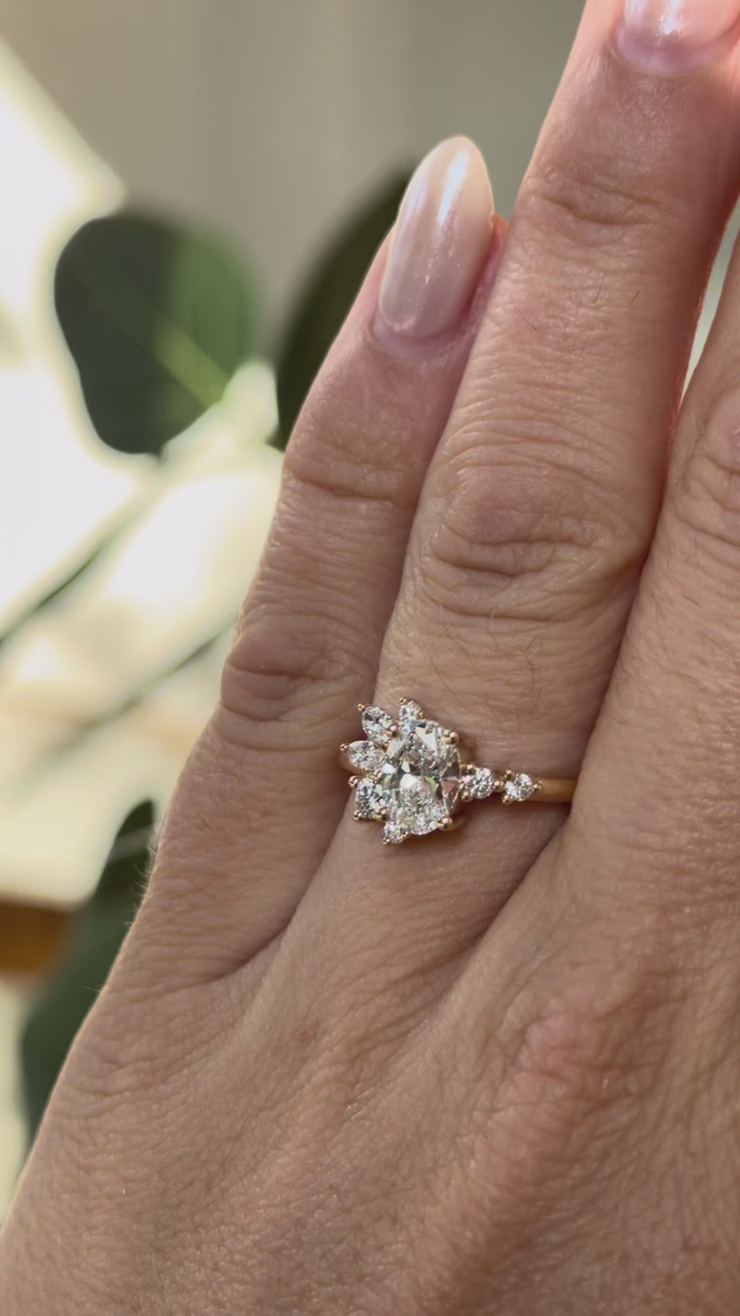 Ambretta Ring | Lab Oval Diamond + Lab Diamond Cluster Engagement Ring 1.09 ct | 14k Recycled Gold | One of a Kind