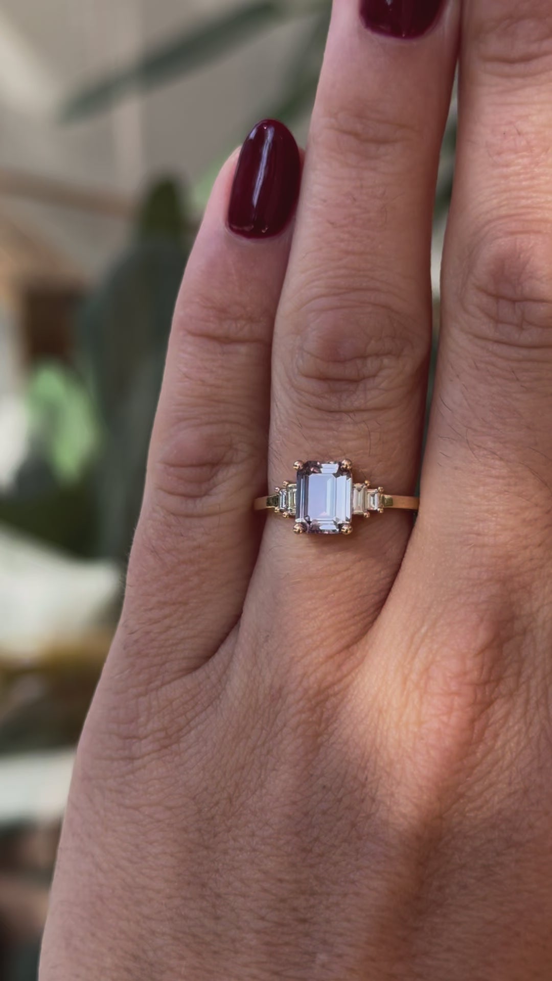 Ash Ring | Lavender Emerald Cut Sapphire + Diamond Baguette Engagement Ring 1.58 ct | 14k Recycled Gold | One of a Kind