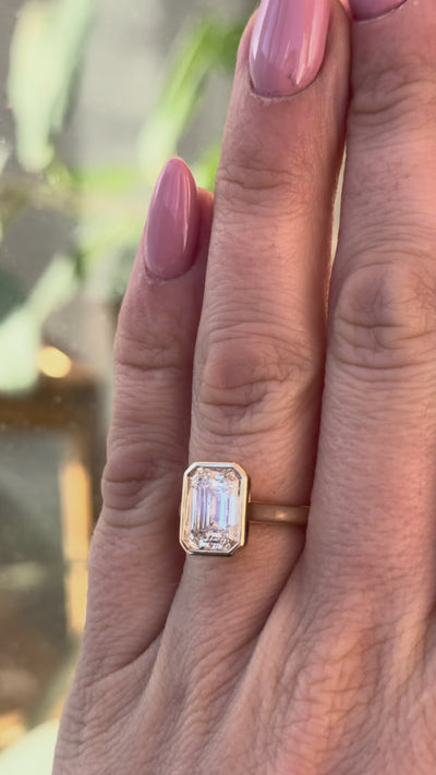 Avens Ring | Lab Emerald Cut Diamond Solitaire Engagement Ring 3.07 ct | 14k Recycled Gold | One of a Kind