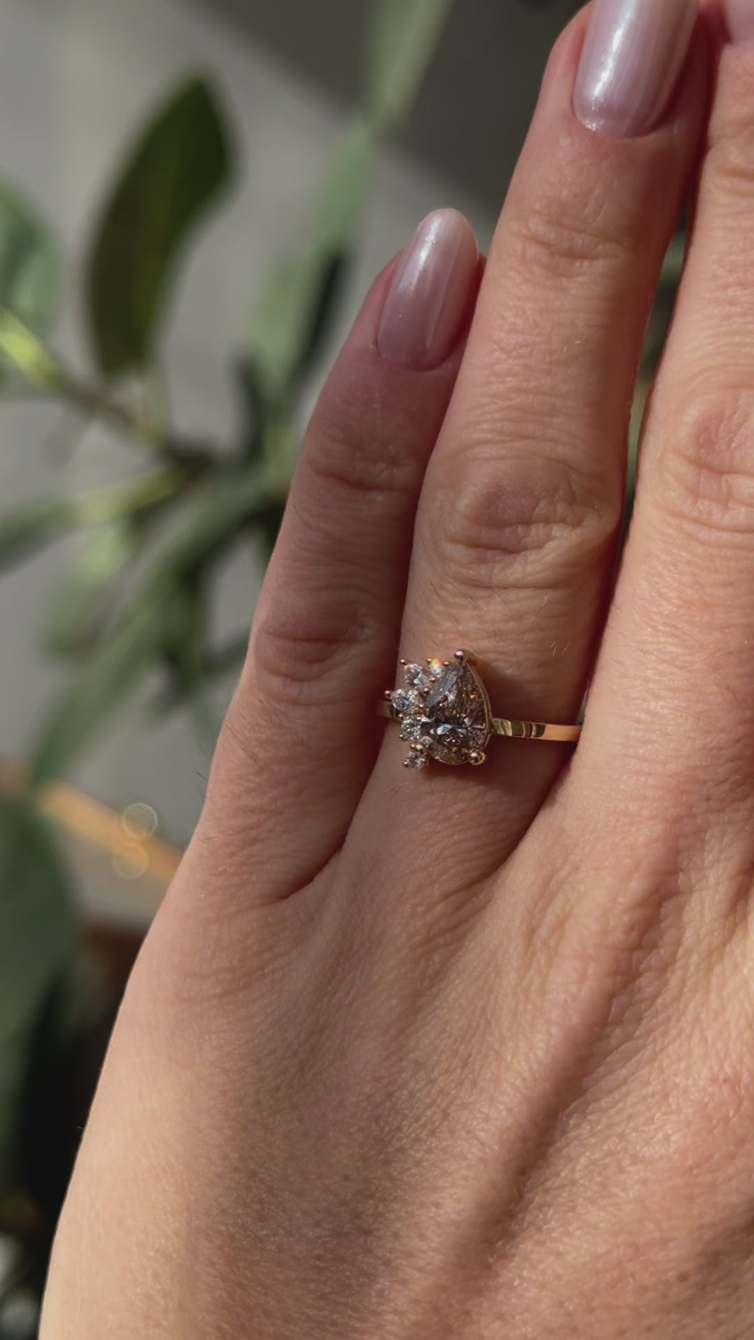 Dahlia Ring | Champagne Pear Cut Diamond + Diamond Cluster Engagement Ring 1.11 ct | 14k Recycled Gold | One of a Kind