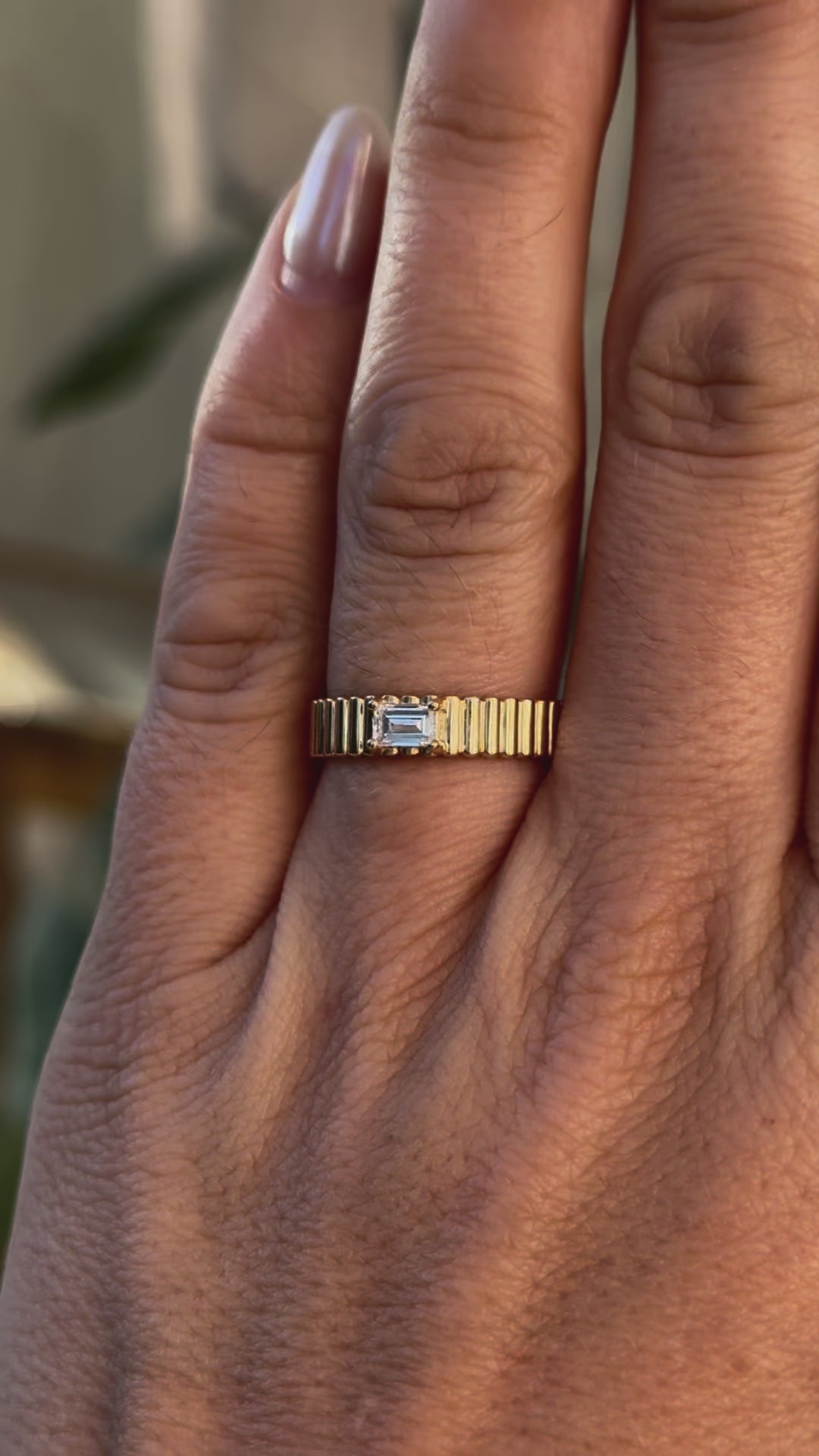 Ellis Ring | Baguette Cut Diamond + Fluted Band Engagement Ring 0.31 ct | 14k Recycled Gold | One of a Kind