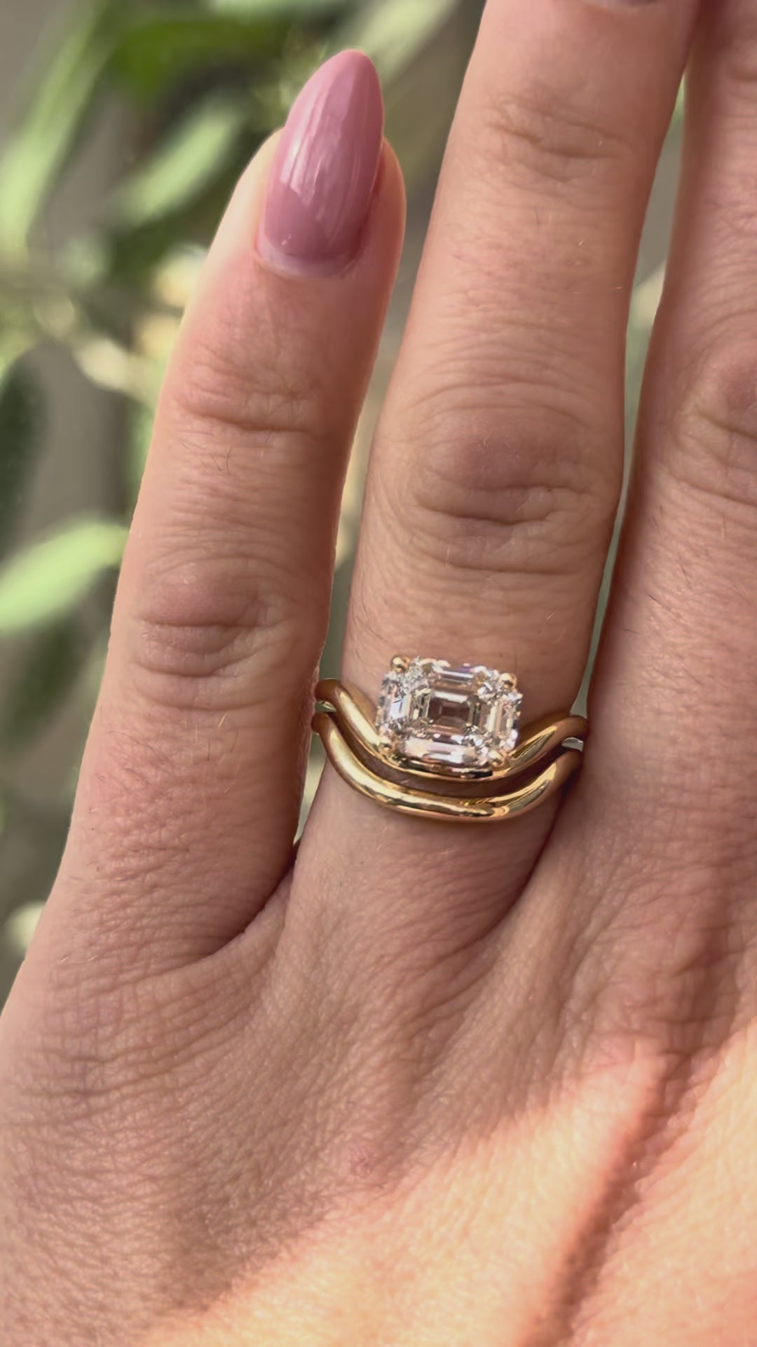 Hayes Ring | Lab Emerald Cut Solitaire + Double Curved Band Engagement Ring 2.59 ct | 14k Recycled Gold | One of a Kind