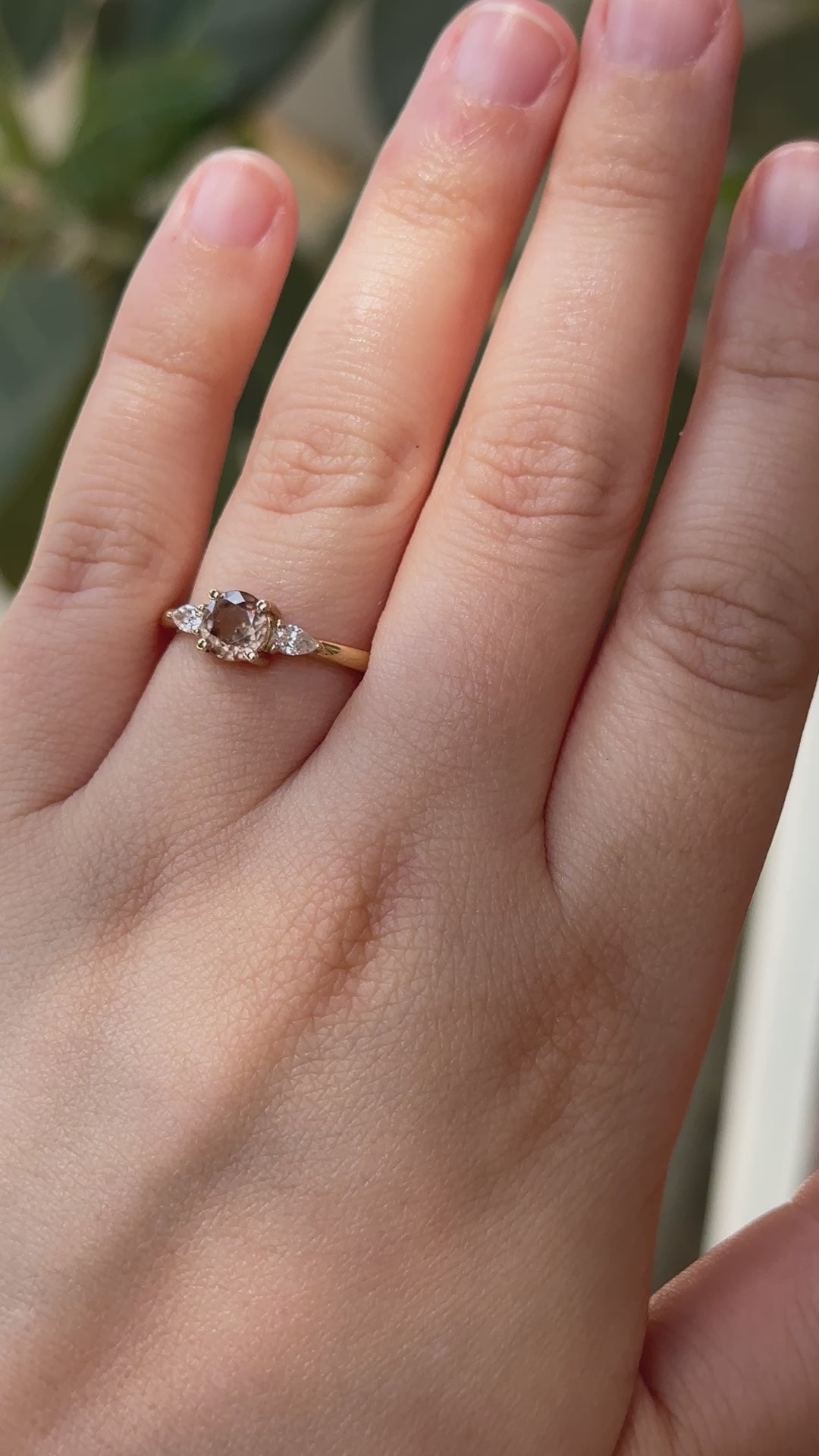 Iris Ring | Brown Sapphire + Pear Diamond Accent Engagement Ring 1.14 ct | 14k Recycled Gold | One of a Kind