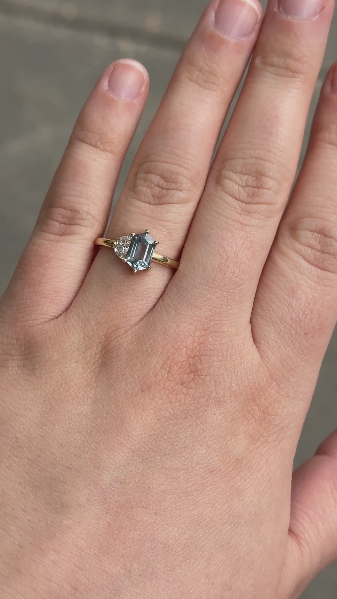 Liana Ring | Grey-Blue Elongated Hexagon Sapphire + Half Moon Diamond Engagement Ring 1.46 ct | 14k Recycled Gold | One of a Kind