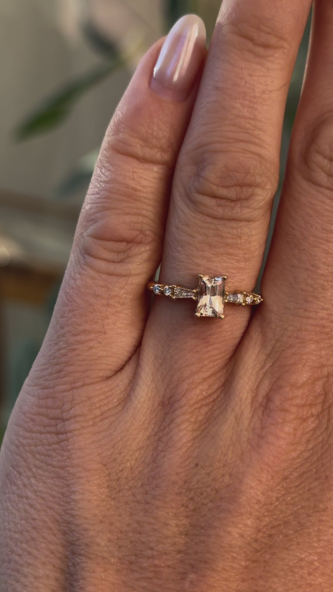 Liesel Ring | Blush Radiant Cut Sapphire + Diamond Baguette Accent Engagement Ring 1.05 ct | 14k Recycled Gold | One of a Kind