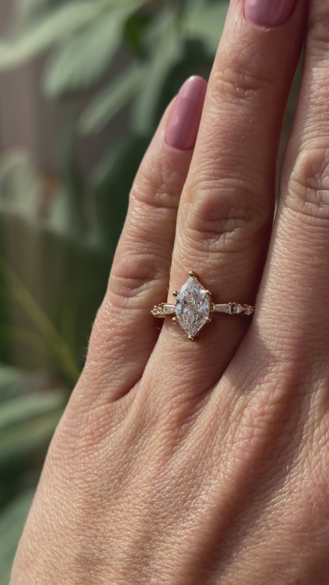 Liesel Ring | Lab Duchess Cut Diamond + Lab Diamond Baguette Accent Engagement Ring 1.53 ct | 14k Recycled Gold | One of a Kind
