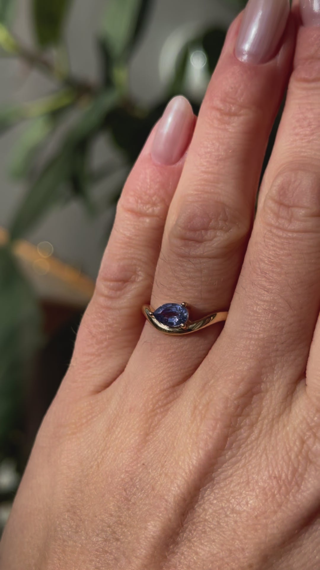 Rhodes Ring | Periwinkle Pear Sapphire Solitaire + Curved Band Engagement Ring 0.81 ct | 14k Recycled Gold | One of a Kind
