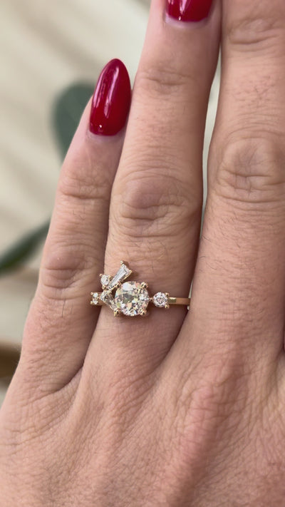 Rowan Ring | Lab Antique Diamond + Diamond Cluster Engagement Ring 1.09 ct | 14k Recycled Gold | One of a Kind