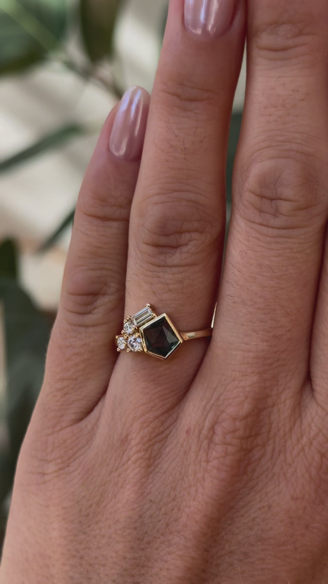 Sarria Ring | Green Geocut Montana Sapphire + Diamond Cluster Engagement Ring 1.00 ct | 14k Recycled Gold | One of a Kind