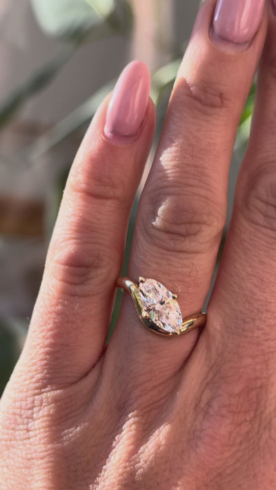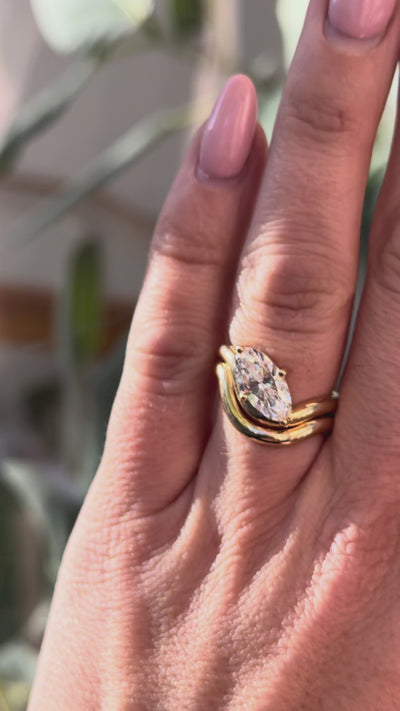 Townes Ring | Lab Moval Cut Diamond Solitaire Curved Band Engagement Ring + Wedding Band Set 1.90 ct | 14k Recycled Gold | One of a Kind