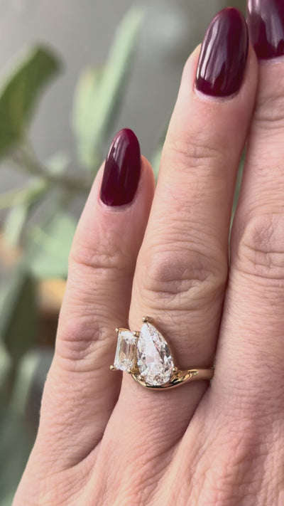 Townes Ring | Lab Pear Cut + Emerald Cut Diamond Curved Band Engagement Ring + Wedding Band Set 2.15 ct + 1.04 ct | 14k Recycled Gold | One of a Kind