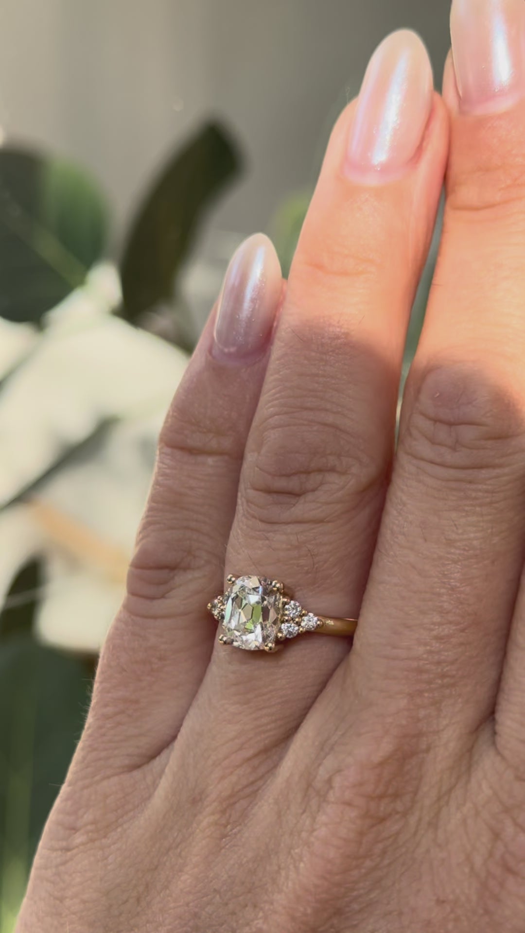 Verona Ring | Lab Antique Cushion Cut Diamond + Round Diamond Accents Engagement Ring 1.78 ct | 14k Recycled Gold | One of a Kind