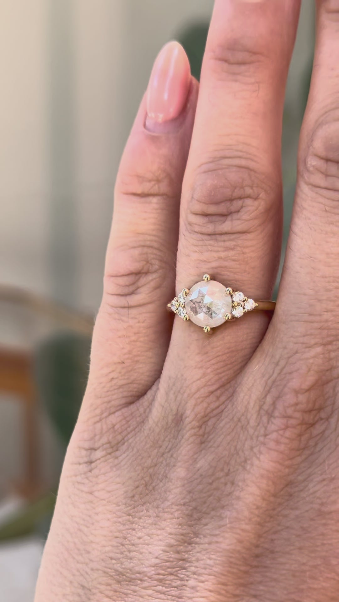 Verona Ring | Silver Rose Cut Diamond + Round Diamond Accents Engagement Ring 1.82 ct | 14k Recycled Gold | One of a Kind